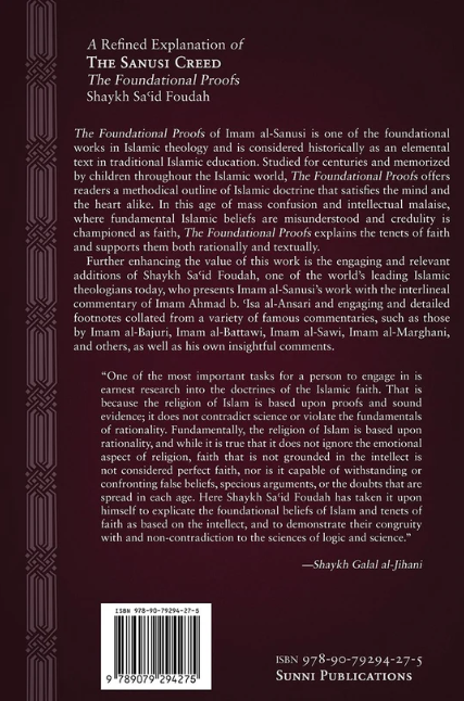 The Foundational Proofs of Imam al-Sanusi is one of the foundational works in Islamic theology and is considered historically as an elemental text in traditional Islamic education. Studied for centuries and memorized by children throughout the Islamic world, The Foundational Proofs offers readers a methodical outline of Islamic doctrine that satisfies the mind and the heart alike. In this age of mass confusion and intellectual malaise, where fundamental Islamic beliefs are misunderstood and credulity is championed as faith, The Foundational Proofs explains the tenets of faith and supports them both rationally and textually.